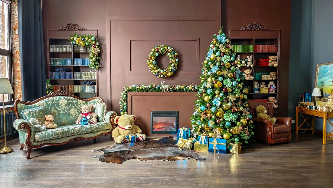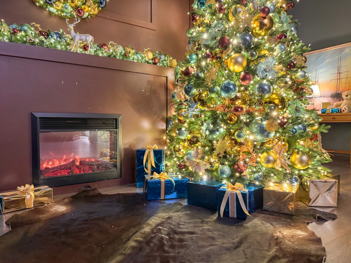 В “Чикаго” пространство работает как зеркало: оно подчёркивает свет в людях, а не отвлекает от него. Мягкое сияние ёлочных шаров, аккуратный огонь камина, насыщенные фактуры дерева и тканей — всё создано для кадра, который выглядит дорогим без единой попытки его усложнить.