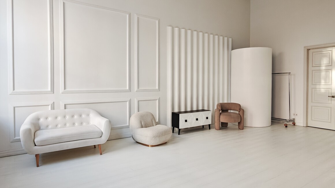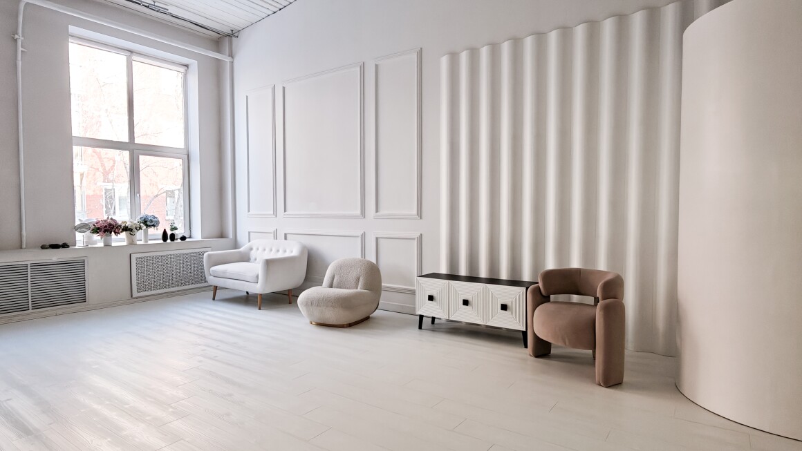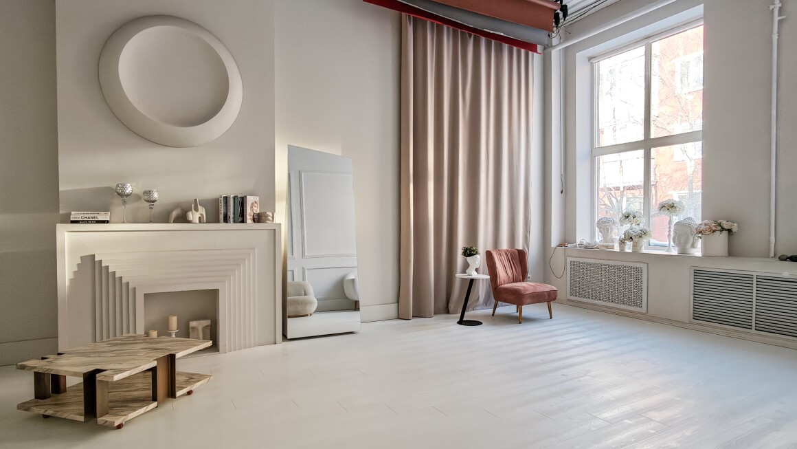 Зал Нью-йорк создан в стиле современной классики, которая никогда не выходит из моды, создает элегантную и изысканную атмосферу, подходящую для любой фотосессии и хорошо сочетается с различными стилями одежды.